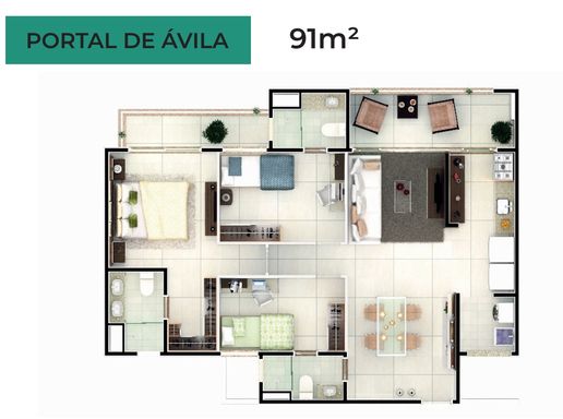 Apartamento à Venda com 3 quartos, 3 banheiros, 2 vagas e 91m² por R$ 746.000 Parque Del Sol, Fortaleza-CE